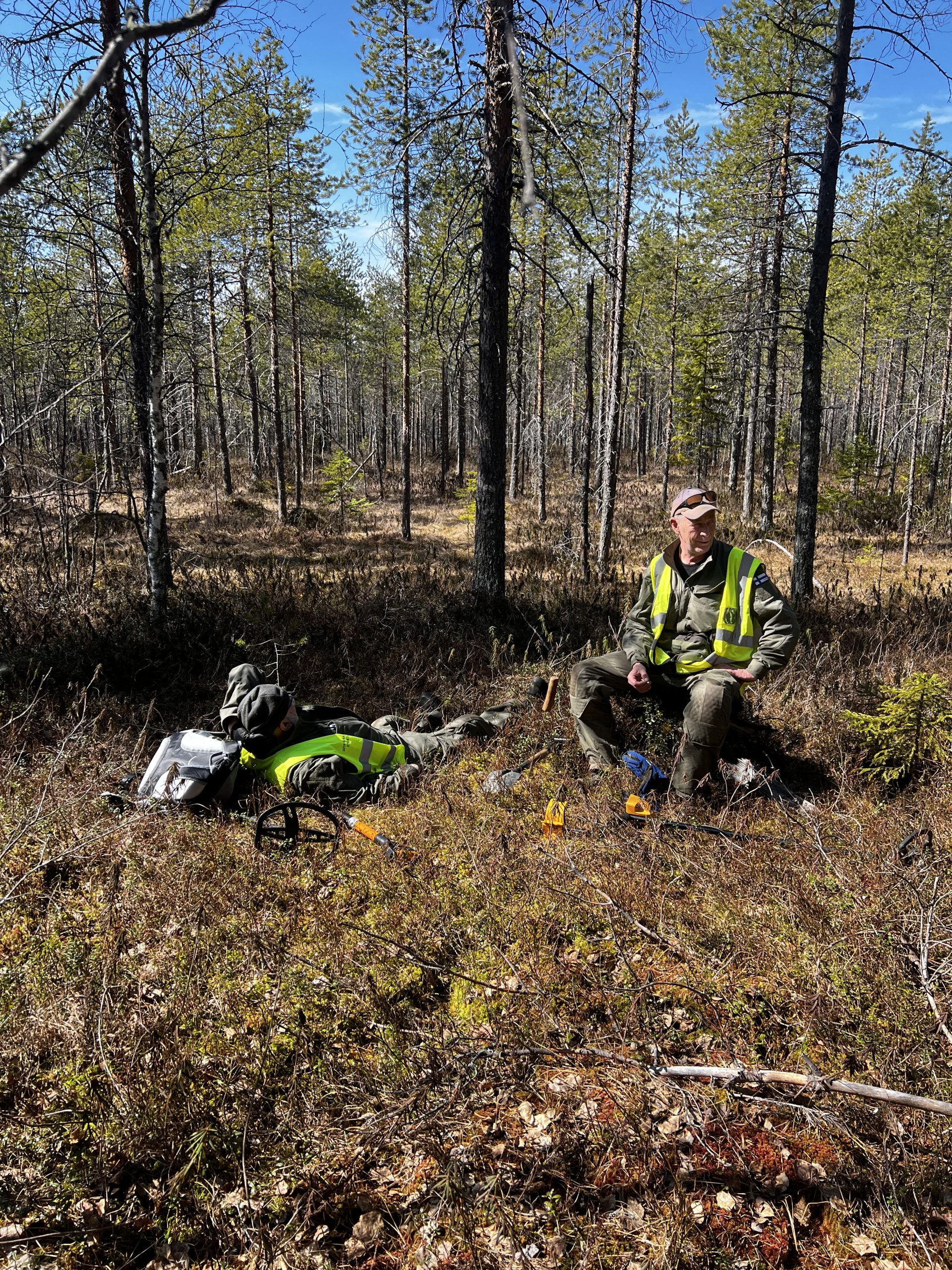 Haukka-ryhmä etsintämatkan Suomussalmelle 13.–16.5.2025. Etsintää tehtiin useamman päivän ajan Hulkonniemen alueella kartta-aineistoa ja aiemmilta etsinnöiltä saatuja tietoja hyödyntäen, tavoitteena selvittää alueen sotatapahtumia ja mahdollisia kaatuneiden sijainteja.